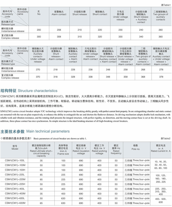 CSM1(CM1) 系列斷路器主要用于交流50Hz,額定電壓690V、400V及以下,額定電流630A及以下的配電網(wǎng)絡(luò)中作為分配電能和保護(hù)線路及電源設(shè)備的過載、欠電壓和短路,殼架等級額定電流400A及以下的斷路器也可作為電動機(jī)的過載、欠電壓和短路保護(hù)。具有隔離功能,適用于建筑行業(yè)分配電。在正常條件下可作為線路的不頻繁轉(zhuǎn)換和電動機(jī)的不頻繁起動之用。